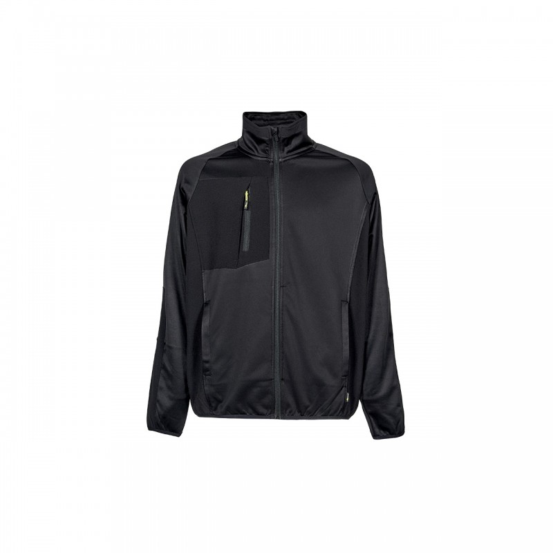Il design ergonomico con manica raglan assicura piena libertà di movimento, mentre la chiusura full zip con collo in piedi permette di adattare la felpa alle diverse condizioni climatiche. Le zip con dentini colorati a contrasto aggiungono un tocco di stile distintivo. Dotata di due ampie tasche sul fondo e una tasca verticale sul petto in tessuto tecnico con chiusura zip, offre tutto lo spazio necessario per riporre in sicurezza piccoli oggetti e strumenti di lavoro.