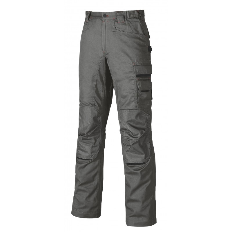 - Pantalone da lavoro in policotone twill dotato di 2 ampie tasche anteriori, tasca laterale portautensili, tasca laterale multifunzionale, porta badge, 2 tasche posteriori con pattina chiuse con velcro, 2 tasche porta ginocchiere con tessuto di rinforzo antiusura; fettuccia porta martello regolabile, regolazione in vita con elastico.