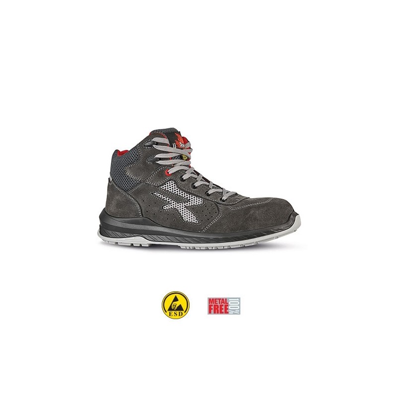 Scarpe antinfortunistiche alte, leggere e comode U-Power della linea Red Industry, con tomaia in morbida pelle scamosciata forata,