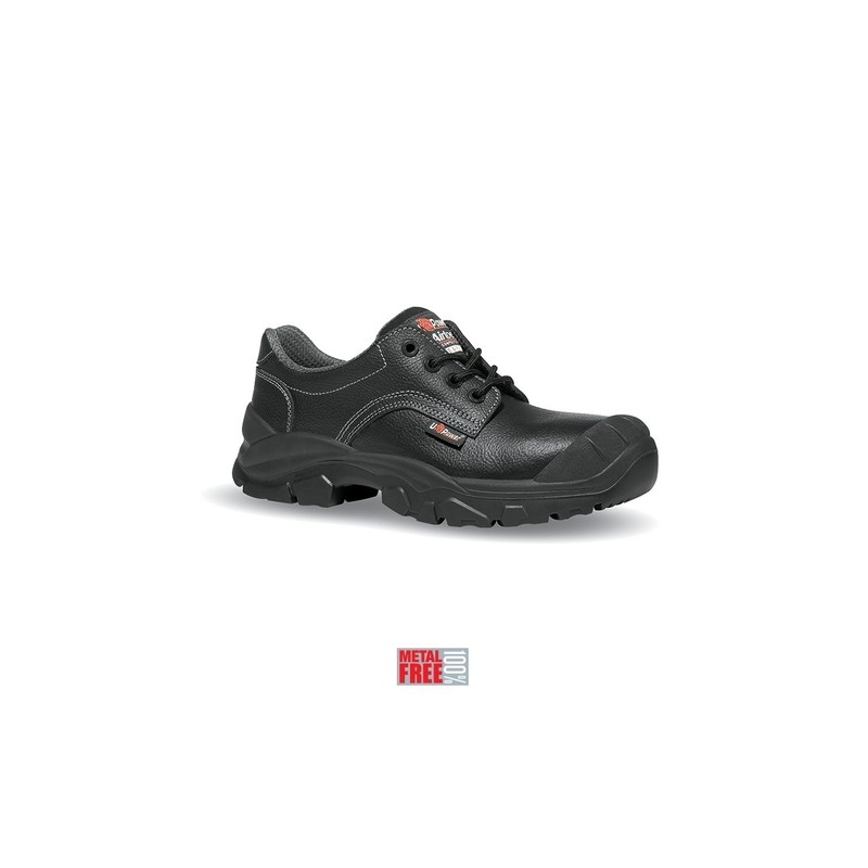 Scarpe antinfortunistiche basse totalmente "no metal", comode u power della linea Rock&Roll, con tomaia in pelle grana mina idrorepellente e copripuntale di rinforzo in poliuretano, puntale Composite, antiperforazione, antiscivolo e suola PU/PU, S3 SRC